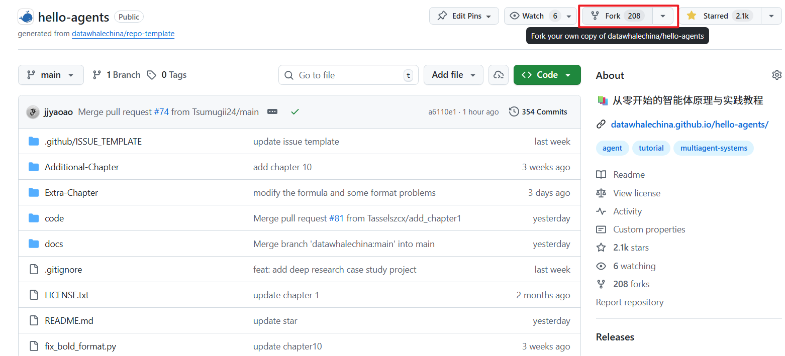 - 访问 Hello-Agents 仓库:https://github.com/datawhalechina/Hello-Agents