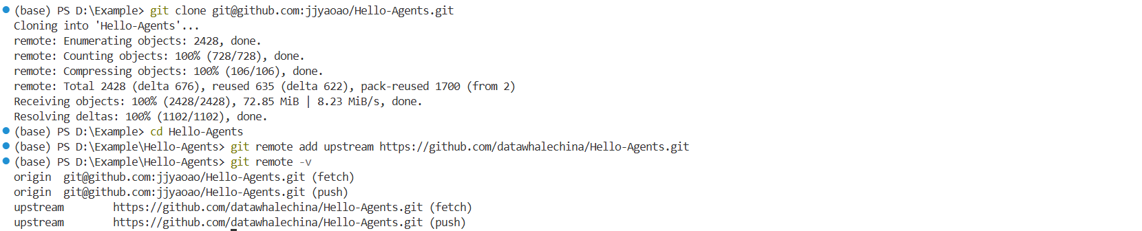 git remote add upstream https://github.com/datawhalechina/Hello-Agents.git